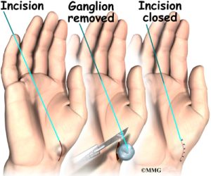 जर सिस्ट वारंवार येत असेल, वेदनादायक असेल किंवा हालचालींना मर्यादा आणत असेल, तर लहान शस्त्रक्रियेद्वारे ती पूर्णपणे काढून टाकली जाते.
